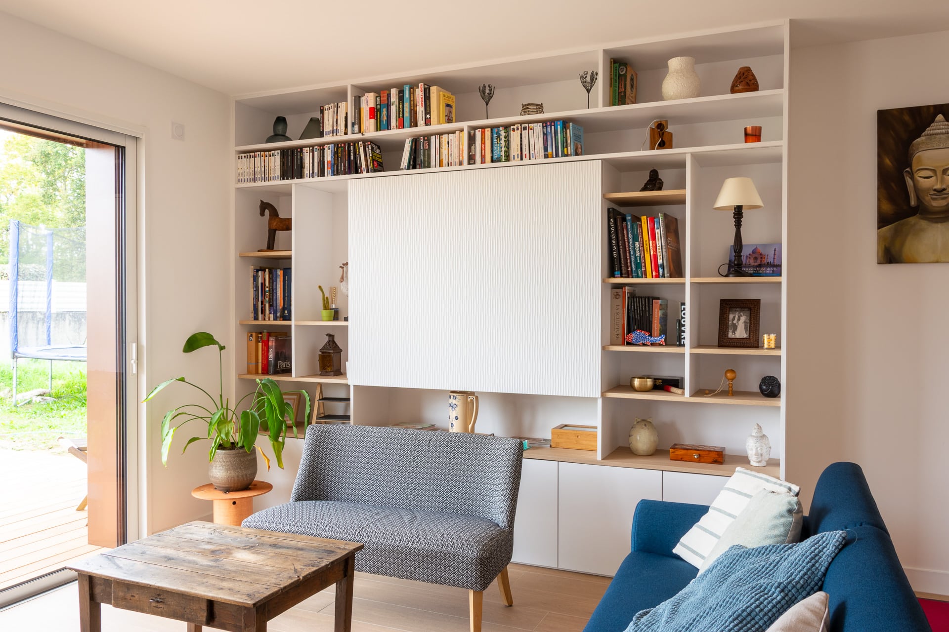 Que vous ayez une configuration atypique, une grande hauteur sous plafond, ou simplement l’envie d’un mobilier unique, je vous accompagne dans la création d’une pièce sur-mesure, pensée pour s’intégrer naturellement à votre espace.