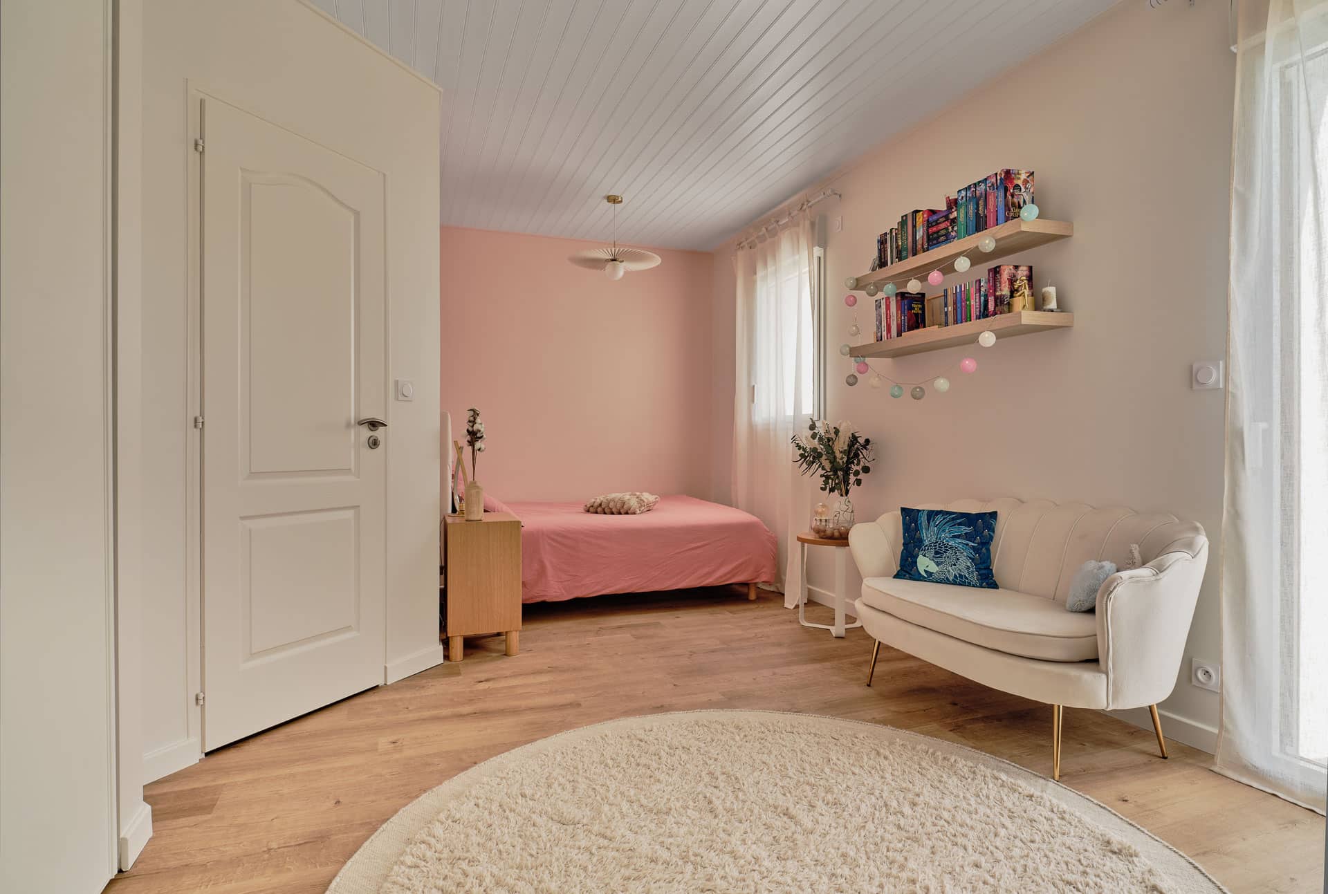 Dès le début du projet, j’ai pris le temps de rencontrer cette adolescente de 13 ans afin de comprendre ses goûts, ses envies et ses attentes. Ainsi, grâce à un échange bienveillant et structuré, elle a pu exprimer librement sa personnalité et son ressenti. Dès lors, la décoration de sa chambre d’adolescente devient bien plus qu’un simple aménagement, car elle participe à son équilibre émotionnel et, également, à son bien-être au quotidien.